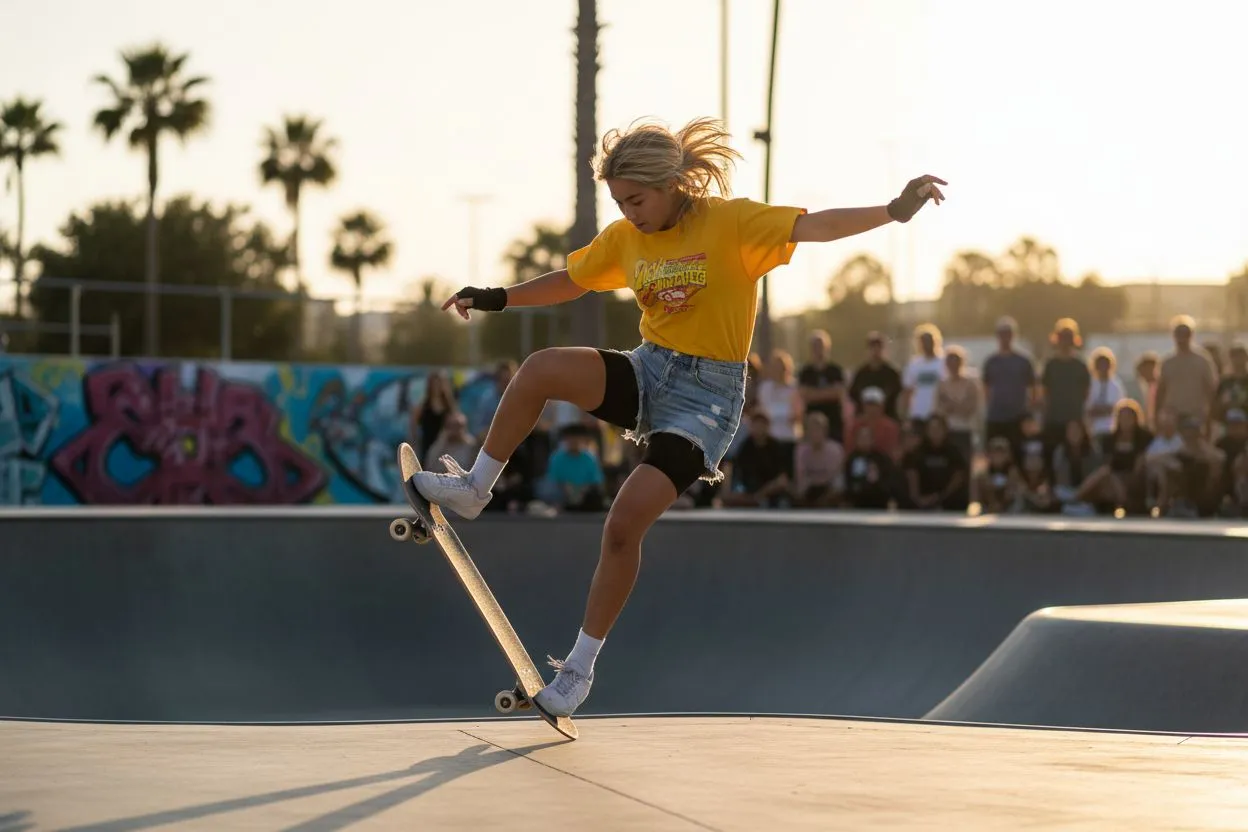 Она объясняет, что перед выполнением «Back-Five» важно создать устойчивое положение корпуса. Вращение начинается не руками, а плечами — тело задаёт импульс, а доска лишь следует за ним. Ошибкой новичков она считает излишнее напряжение: «Чем мягче движения, тем чище трюк».